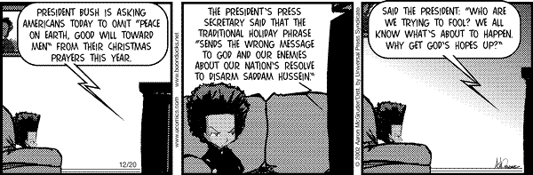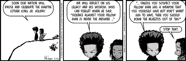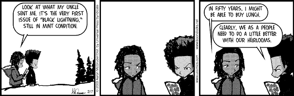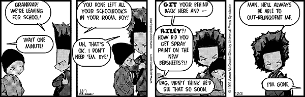 Daily comics LatestShow latest ListComics list Boondocks Type Image with date in URL Source https://picayune.uclick.com/comics/bo/{yyyy}/bo{yyMMdd}.gif Website https://www.ucomics.com/boondocks/